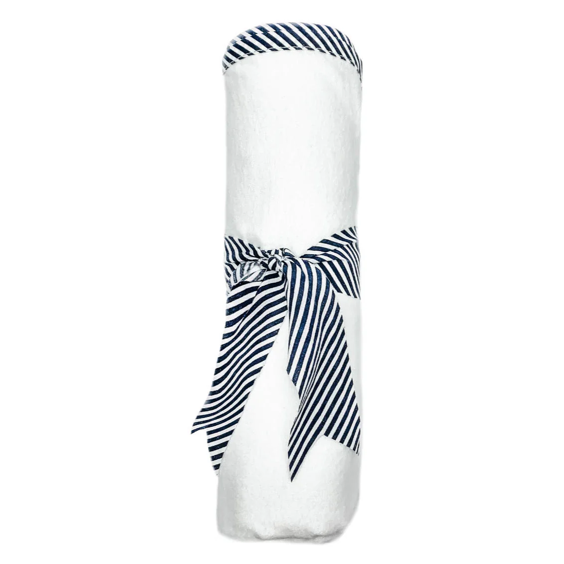 Large Hypoallergenic Cotton Flannel Receiving Blanket – Navy Stripe Trim (40” x 40”)